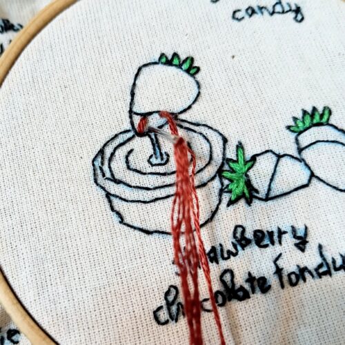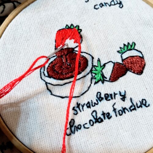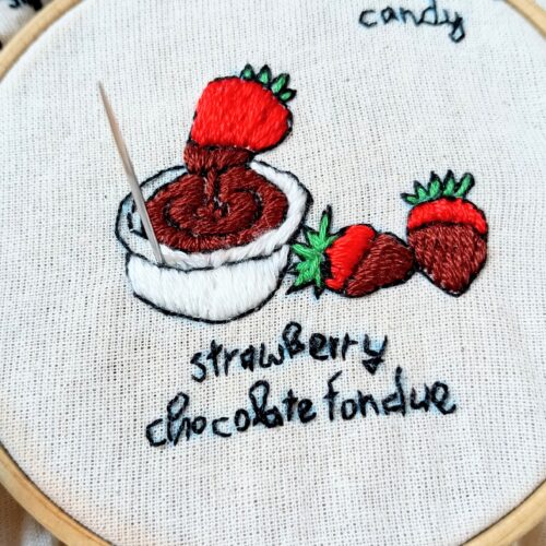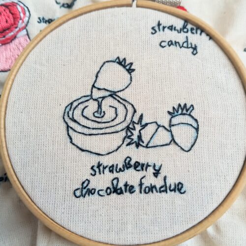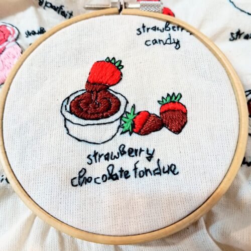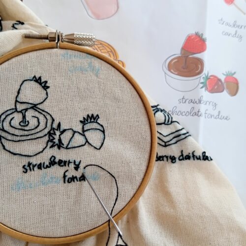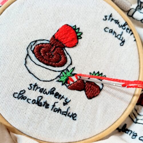 今回はいちごチョコフォンデュの刺繍を作ります