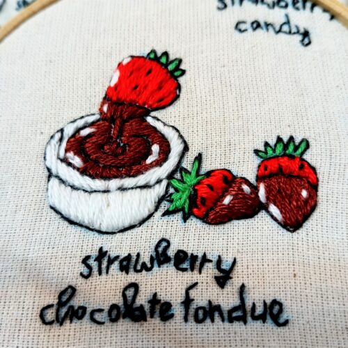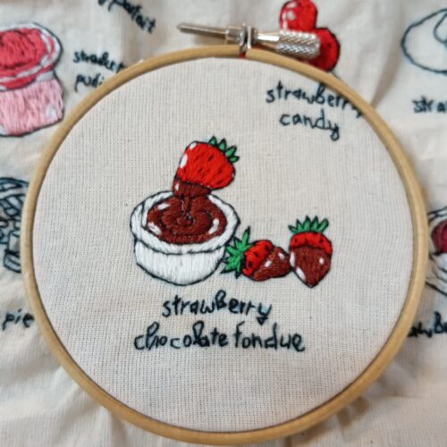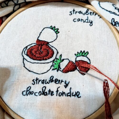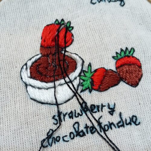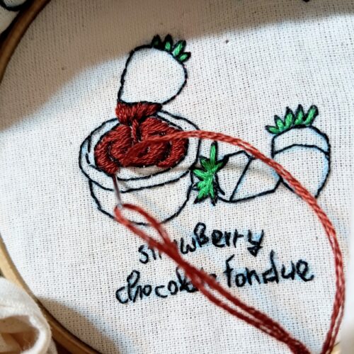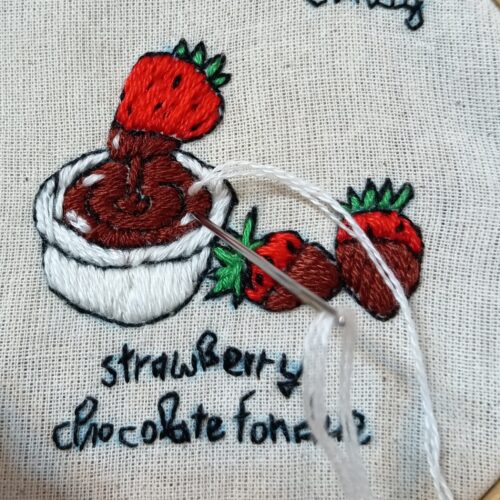 4.苺チョコフォンデュ刺繍の完成