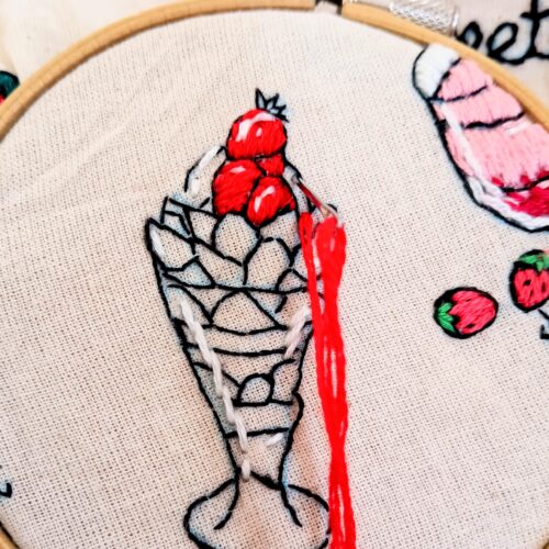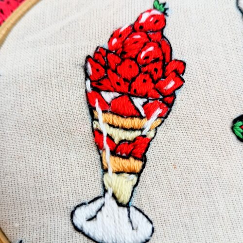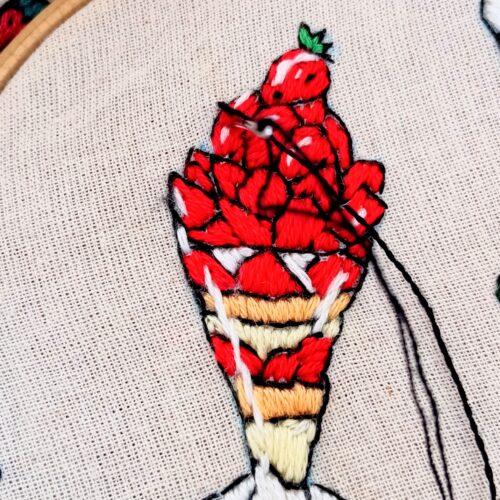 次はパフェの間の部分をおなじくサテンステッチで埋めます